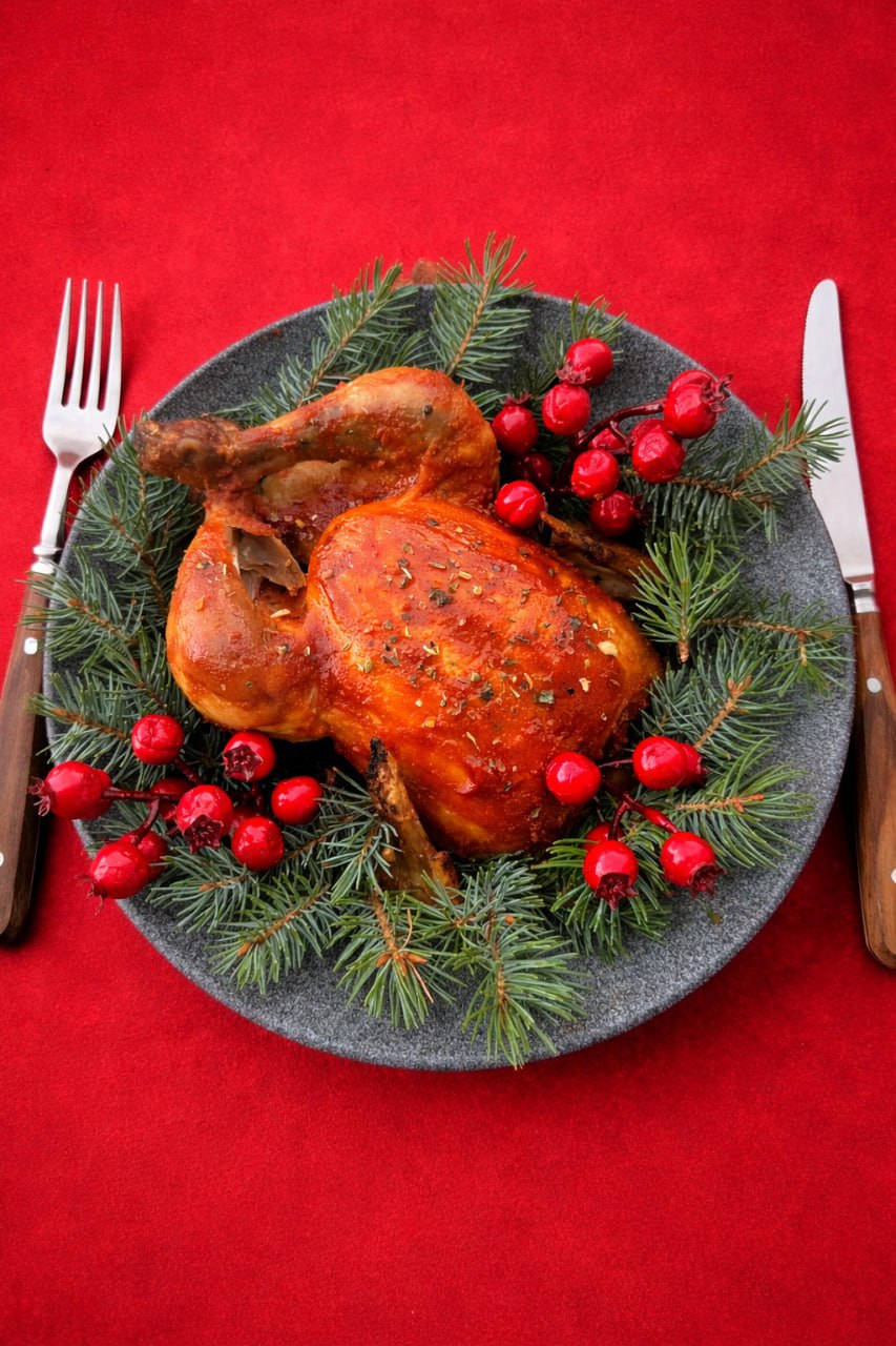 Олів'є з яловичиною - 1,4кг <br> <br>Оселедець під шубою - 1кг <br> <br>Крабовий салат - 900г <br> <br>Жульєн з куркою та грибами - 1,2кг <br> <br>Шпінатні млинці з крем-сиром,червоною ікрою та лососем - 900г <br> <br>Тарталетки з червоною ікрою - 450г <br> <br>Запечена курка - 1,5кг <br> <br>Картопляне пюре - 1кг <br> <br>Торт "Наполеон" - 1,2кг