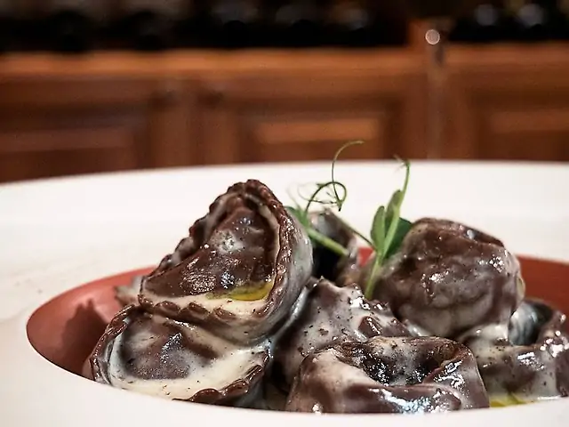 Равіолі із яловичиною з соусом демі-гляс та чорною ікрою