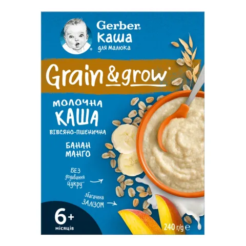 Каша Gerber 240 г мол. вівсяно-пшенична з бананом та манго