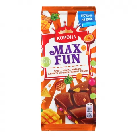 Шок Корона Max Fun 150 г мол. з шматоч. манго/ананаса/маракуї та вибух. карам.