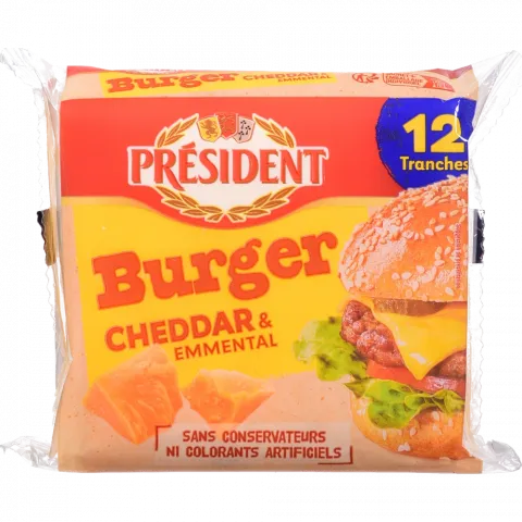 Сир Президент 200 г д/бургерів з Чеддером та Емменталем 40