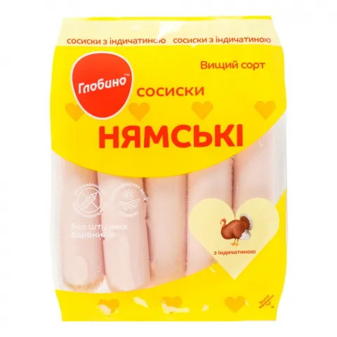 Сосиски Глобино Нямські з індичатиною 275 г в/ґ б/о