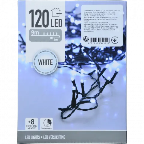 Гірлянда зовн та внутр, на 120 світлодіод ламп тепл біл кольору, 12 метрів AX8451120 И149 (КІН)