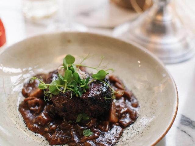 Королевский стейк, приготовленный из центральной части отборной вырезки. Подается с грибами и трюфельным кремом. 180-280 г сырого веса.
