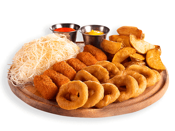 Гарнир на выбор: Картофель фри , Куриные стрипсы, Картошка по-селянськи, Сырные стрипсы. Желаемый гарнир указывать в комментарии к заказу.