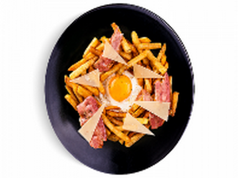 Картофель фри, бекон, яйцо жареное, сыр пармезан, прованские травы