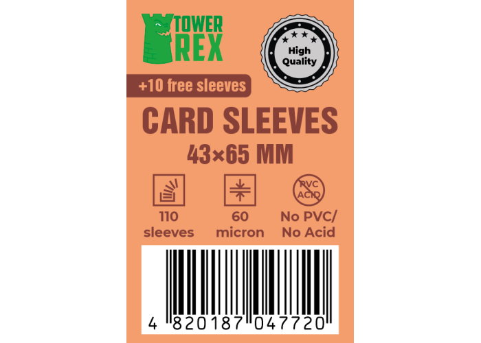 Протекторы для карт TowerRex (45 х 68 мм, 60 мкм, Mini Euro, 110 шт.) (STANDART)