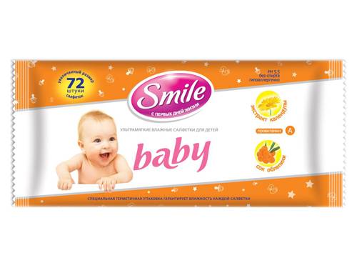 Смайл Baby Серветка вологі Екстракт ромашки і алое з вітам. компл. 72 шт. з клапаном