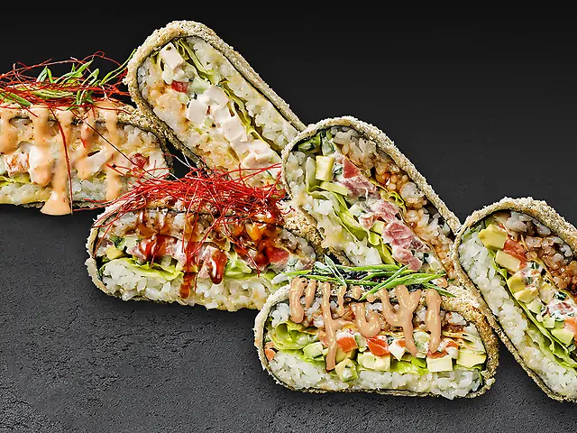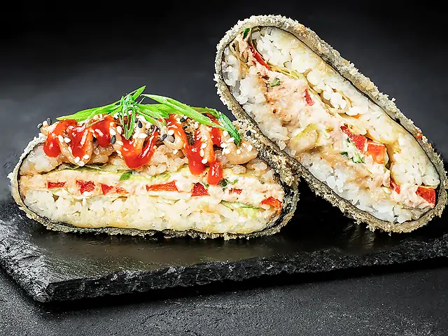 Суші бургер з лососем, Суші бургер з тунцем, Суші бургер з куркою