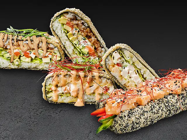 Суші бургер з лососем, Суші бургер з куркою, Рол-дог з креветками