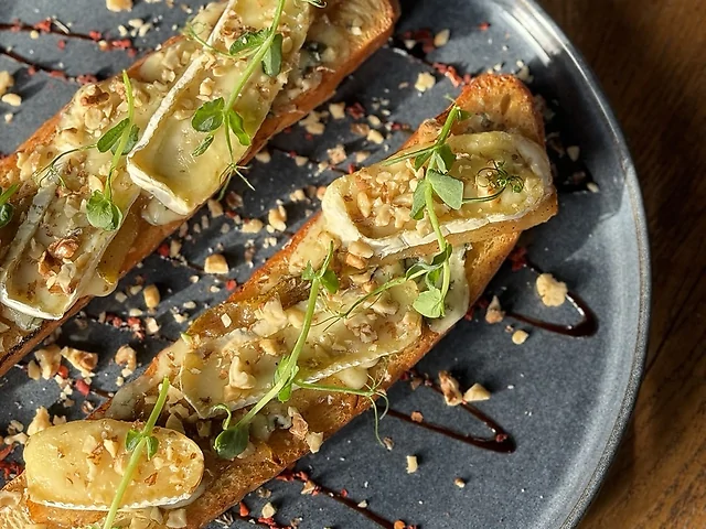 Чіабатта, карамелізована груша, дор блю, камамбер, волоський горіх, кориця