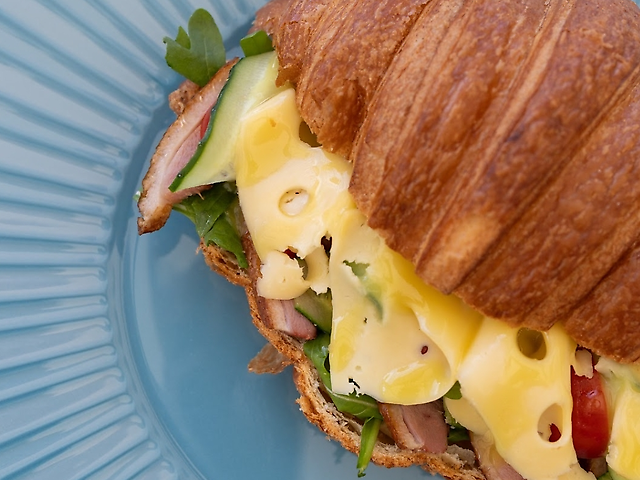 чіабата, сир камамбер, яблуко мариноване, груша, мус з яблук, мигдалеві пластивці та гірчичний соус
